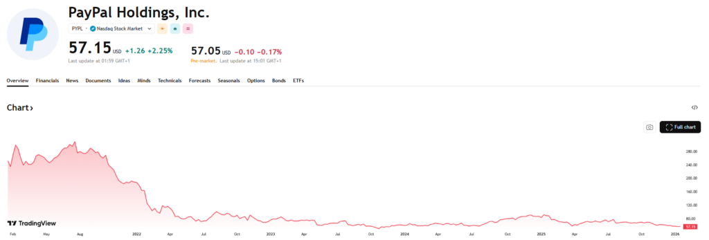 PayPal is een wereldwijde speler in digitale betalingen en online transacties, actief via platforms zoals PayPal en Venmo. Na een periode van sterke groei is het bedrijf in rustiger vaarwater beland, wat zich vertaalt in een bijzonder lage waardering van ongeveer 10 keer de verwachte winst en amper 7 keer de vrije kasstroom. Het management speelt daar nadrukkelijk op in met een aandeleninkoopprogramma van in totaal 15 miljard dollar, waarmee men aan de huidige marktkapitalisatie zo’n 30% van de eigen aandelen kan inkopen. Daardoor versnelt de daling van het aantal uitstaande aandelen de laatste jaren stevig. Het voorbije jaar kocht het bedrijf maar liefst 11% van de eigen aandelen in. Tegelijk probeert PayPal zijn platform relevanter te maken via samenwerkingen rond artificiële intelligentie, onder meer met ChatGPT en Google, wat op termijn de groei moet stuwen.