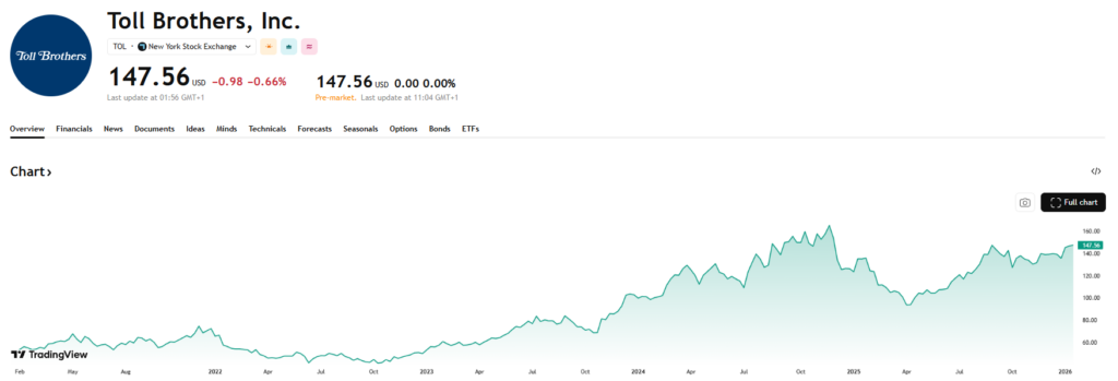 Toll Brothers is een Amerikaanse vastgoedontwikkelaar die zich specialiseert in luxewoningen. De resultaten zijn cyclisch en afhankelijk van de vastgoedmarkt, maar in goede jaren genereert het bedrijf aanzienlijke cashflows. Die worden niet alleen gebruikt om de balans te versterken, maar ook om eigen aandelen in te kopen, waardoor de winst per aandeel over de cyclus heen wordt opgekrikt. Op 10 jaar tijd kocht het bedrijf bijna de helft van de eigen aandelen in en steeg de winst per aandeel met 22% per jaar. Het aandeel noteert nu aan 10 keer de verwachte winst en 9 keer de vrije kasstroom.