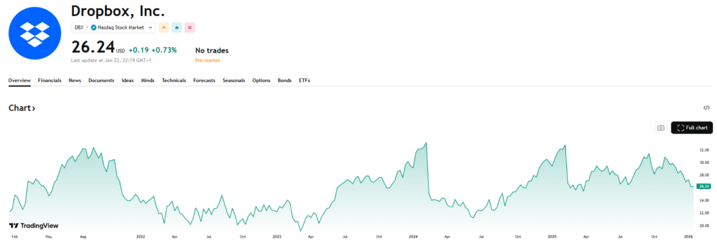 Dropbox biedt software voor cloudopslag en samenwerking aan bedrijven en particulieren, met een abonnementsmodel en voorspelbare inkomsten. De groei is beperkt, maar de vrije kasstroom is hoog. In plaats van die cash te investeren in risicovolle expansie, kiest het management resoluut voor massale aandeleninkoop. Het resultaat is een snelle daling van het aantal uitstaande aandelen en een sterke groei van de winst per aandeel zonder noemenswaardige omzetgroei.
