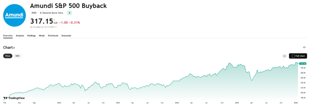 Voor beleggers die zich liever niet wagen aan stock picking binnen dit thema, bestaat er gelukkig ook een ETF die zich richt op het thema aandeleninkoop. De Amundi S&P 500 Buyback UCITS ETF (LU1681048127) volgt een index van Amerikaanse bedrijven die de voorbije twaalf maanden het meest actief waren in het inkopen van hun eigen aandelen. De ETF is accumulerend, wat fiscaal interessant is voor Belgische beleggers, en rekent met een zeer lage kostenratio van 0,15% per jaar. De tracker biedt zo een eenvoudige en gespreide manier om te profiteren van het kannibaalprincipe, zonder zelf verschillende individuele aandelen te moeten opvolgen.