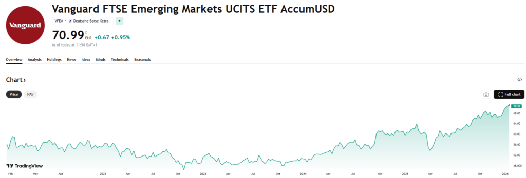 De iShares MSCI Emerging Markets UCITS ETF volgt de MSCI Emerging Markets Index en belegt in meer dan duizend bedrijven uit opkomende economieën. De lopende kosten liggen rond 0,18%. Deze ETF keert de ontvangen dividenden periodiek uit aan de belegger, wat interessant kan zijn voor wie graag een regelmatige inkomstenstroom ziet op zijn rekening.