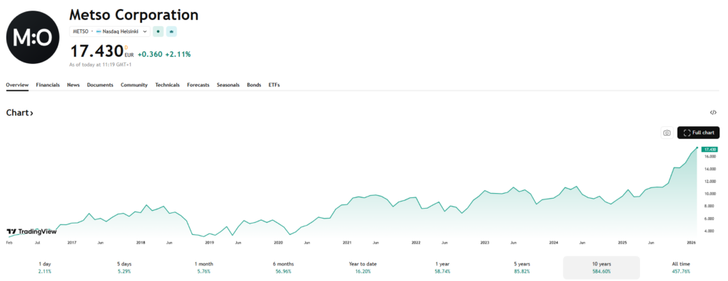 Het Finse Metso is een toonaangevende industriële speler in technologie en diensten voor de mijnbouw. Het bedrijf profiteert van de structureel stijgende vraag naar metalen en mineralen, gedreven door wereldwijde investeringen in infrastructuur, hernieuwbare energie en elektrificatie. Door de combinatie van apparatuurverkoop met langlopende service- en onderhoudscontracten creëert Metso stabielere inkomsten binnen een traditioneel cyclische sector. De energietransitie versterkt de behoefte aan koper en andere kritieke metalen, wat de vraag naar mijnbouwtechnologie ondersteunt.