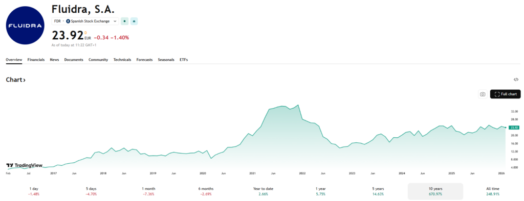 Fluidra is een Spaanse multinational die sinds 1969 uitgegroeid is tot een wereldspeler in de zwembad- en wellnesssectoren. Het bedrijf ontwikkelt, produceert en distribueert filtratie- en verwarmingssystemen, pompen en formules voor desinfectie en waterbehandeling. Zowel residentiële als commerciële projecten – van privézwembaden tot wellnesscentra – behoren tot de kernmarkt. Analisten mikken op een winstgroei van 15 procent per jaar, terwijl het lopende besparingsprogramma extra marge en aandeelhouderswaarde kan vrijmaken. Hoewel de waardering hoog lijkt, blijven de winstverwachtingen het aandeel ondersteunen.