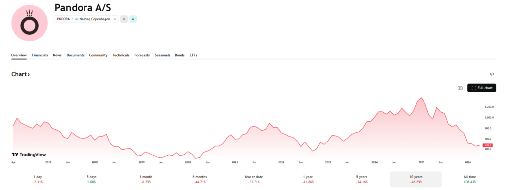 Ben je op zoek naar een juweeltje tegen een schappelijke prijs? Dan ben je bij Pandora A/S aan het juiste adres. Deze Deense firma is op het vlak van omzet de grootste juwelier ter wereld. Als een van de grote slachtoffers van de Amerikaanse importtarieven halveerde de aandelenkoers in een jaar tijd. De firma heeft een agressief aandeleninkoopprogramma en vernietigde de afgelopen tien jaar al meer dan 30 procent van zijn uitstaande aandelen. Vermoedelijk zal het binnenkort een nieuw aandeleninkoopprogramma starten. Door de lage koers zullen aandeelhouders daar vroeg of laat de vruchten van plukken. (Isin-code: DK0060252690)