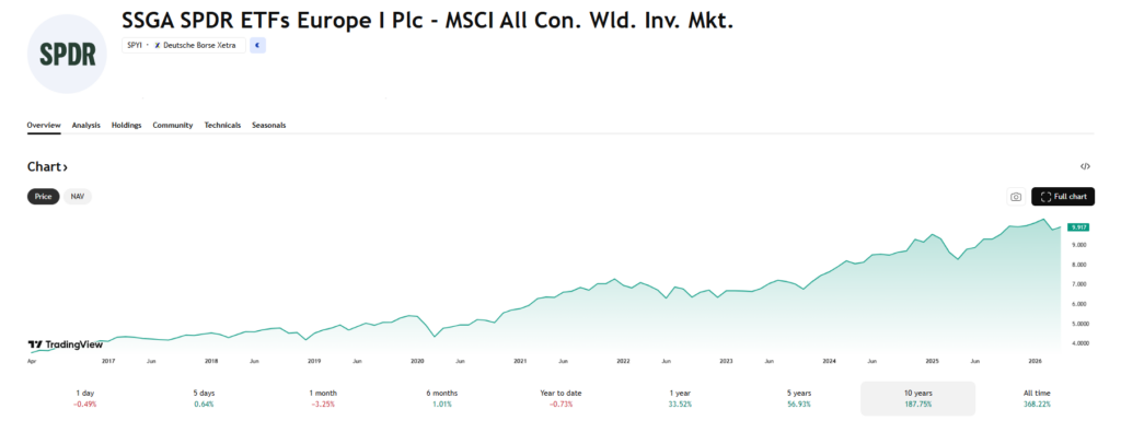 Dit manusje-van-alles is de perfecte allrounder voor de passieve belegger. Wil je jaarlijks of maandelijks een vast bedrag investeren of gewoon een robuuste portefeuille uitbouwen zonder al te veel bezig te zijn met jaarverslagen en aandelenkoersen? Dan is dit iets voor jou. Door de recente splitsing werd de prijs van een enkel aandeel van deze ETF van State Street gedeeld door 25. Daardoor koop je vandaag al voor ongeveer 10 euro een deeltje van meer dan 4.500 grote en kleine ondernemingen in zowel ontwikkelde als opkomende markten. (Isin-code: IE00B3YLTY66)