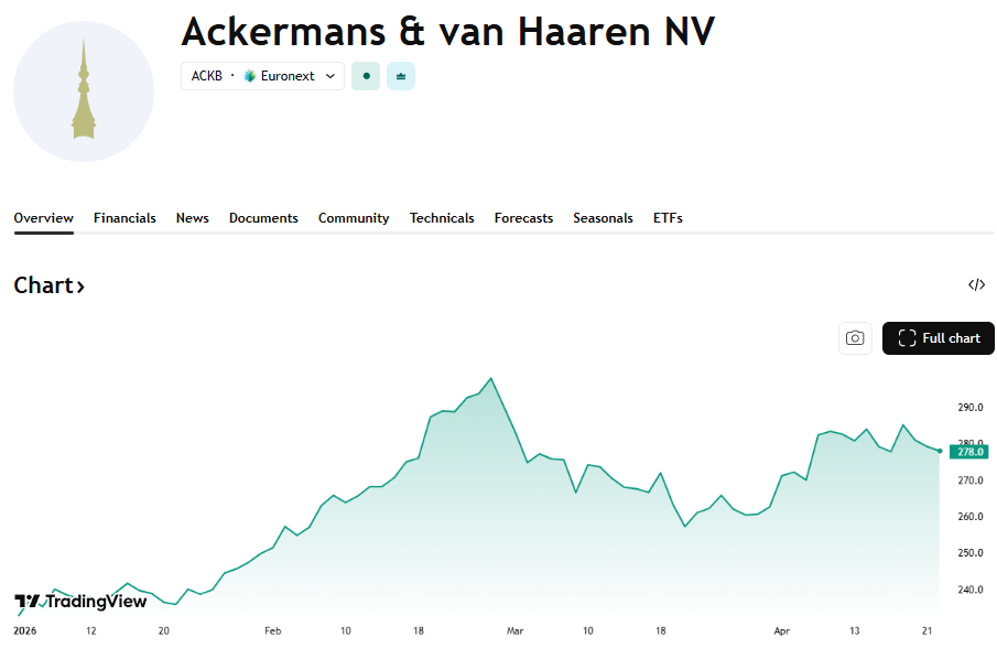 Die trend zie je ook duidelijk terug op de Belgische beurs. DEME (+32% in het eerste kwartaal van 2026) profiteert van de sterke vraag naar offshore energieprojecten, met een recordhoog orderboek en solide marges, wat zich vertaalt in een duidelijke winstgroei voor de groep. Palmolieproducent Sipef (+22%) profiteert van hogere palmolieprijzen en een herstel van productie. Ook bouwgroep CFE (+19%) toont beterschap na eerdere herstructureringen en weet opnieuw winstgevender te werken. Wat deze bedrijven gemeen hebben, is dat ze allen de voorbije weken nieuwe recordkoersen neerzetten en dat het dochterondernemingen van Ackermans & Van Haaren (+13%) zijn. Het hoeft dan ook niet te verbazen dat ook de Antwerpse investeringsmaatschappij, die dit jaar 150 kaarsjes uitblaast, het jaar uitstekend begonnen is.