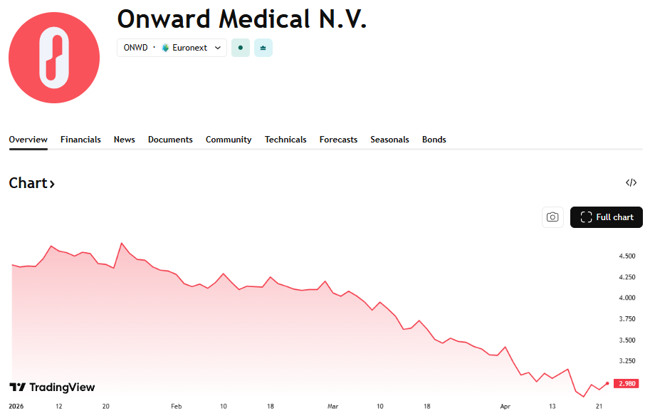 Onward Medical (-26%) zet stappen richting commercialisatie van zijn neurostimulatieplatform ARC-EX, dat gericht is op het herstellen van motorische functies bij verlammingspatiënten. De eerste signalen van marktaanvaarding zijn positief, maar de inkomsten blijven voorlopig beperkt tegenover de hoge ontwikkelings- en commerciële kosten, wat zich vertaalt in stevige verliezen. De komende jaren zullen vooral draaien rond de uitrol in de VS en Europa, wat bijkomende investeringen vereist.