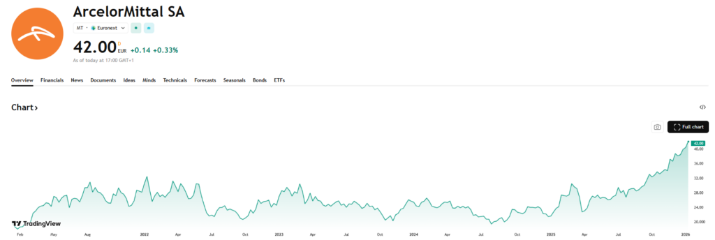 Als grootste Europese staalproducent geldt ArcelorMittal als een schoolvoorbeeld van de klassieke zware industrie. Het bedrijf is actief in de volledige staalwaardeketen en levert aan sectoren zoals bouw, auto-industrie en infrastructuur. De winstgevendheid is sterk cyclisch en beweegt mee met economische groei, staalprijzen en energie- en grondstofkosten. De voorbije jaren stonden de marges onder druk, waardoor ook de beurskoers in het gedrang kwam. Het aandeel is een hefboom op een heropleving van de Europese industrie, maar tegelijk ook bijzonder gevoelig voor recessies en importtarieven.